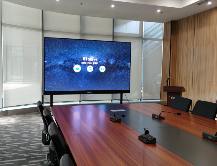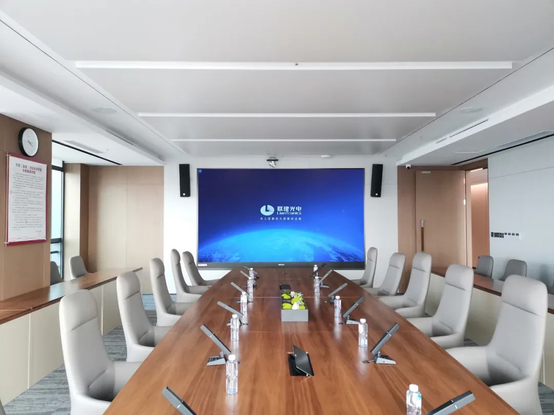 在园区内,联建光电为其打造了11套智慧会议显示方案,采用METAGO系列智能会议显示终端产品,整屏轻薄便于安装,尺寸多样选择灵活。