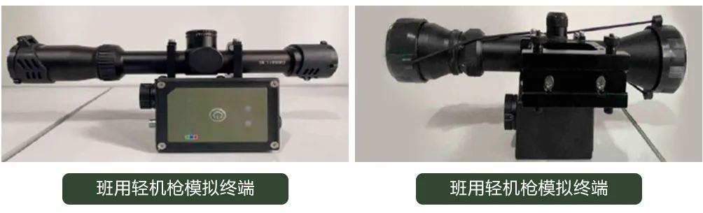 单兵轻武器模拟终端以单兵装具为基础配以不同类型的武器,完成对单兵模拟对抗装备的配套以及模拟对应武器的火力毁伤效能和被打击效能。其中,包含单兵装具、单兵头盔和实装加挂模拟武器终端,模拟武器终端涵盖95自动步枪、95-1自动步枪、191自动步枪、95短步枪、92手枪、霰弹枪、班用轻机枪、重机枪、5.8mm狙击步枪、7.62mm狙击步枪、12.7mm狙击步枪等。