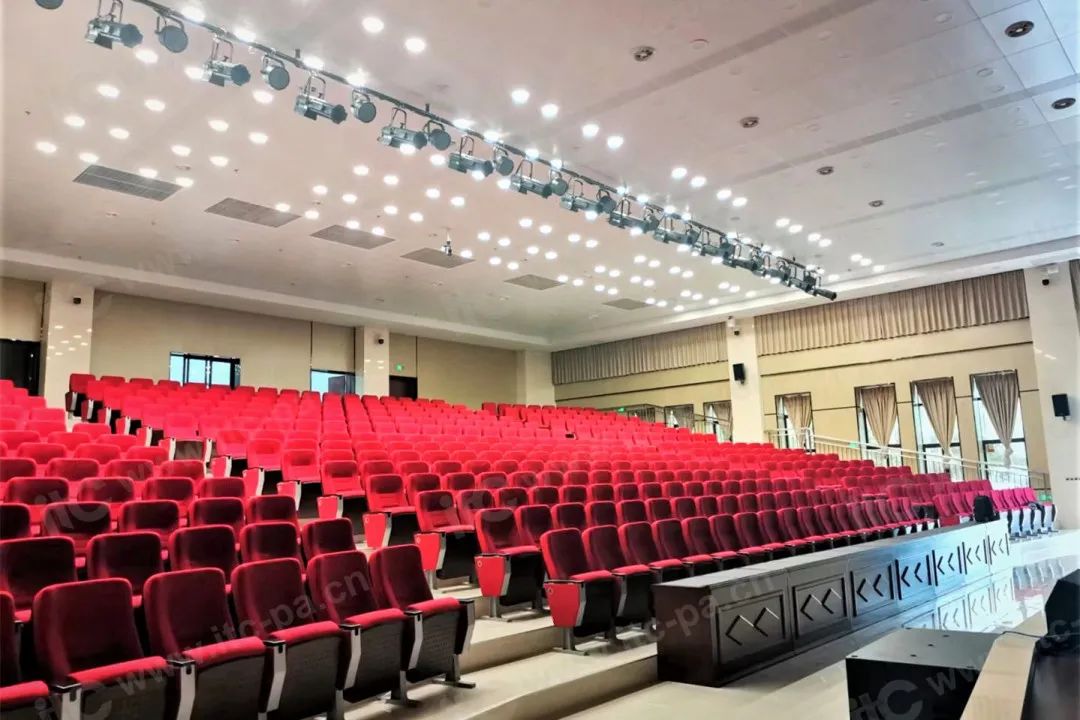报告厅承载着各类大中小会议、报告演说、专题培训、新闻发布及文艺演出等功能,是公司开展重要活动的场所之一。对此,itc保伦股份结合现场环境配合建筑声学设计了集专业扩声、数字会议、舞台灯光、会议录播、智能中控等多种音视频系统的整体解决方案,助力中金公司加速推进业务系统的数字化进程,为公司各类活动的顺利开展提供有力保障。