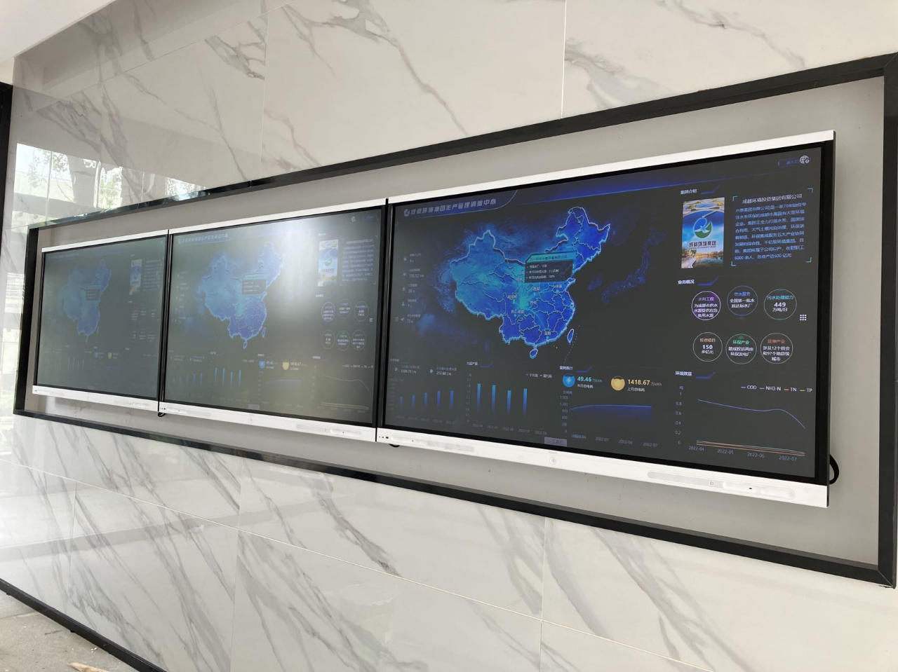 通过拼接显示控制设备,将接入系统的信息流信号在指挥大厅大屏上集中显示,远程实时掌握污水厂运行状况,强化对各污水厂生产运行监管,对于区域分散、异地厂站的运行情况掌握更及时。