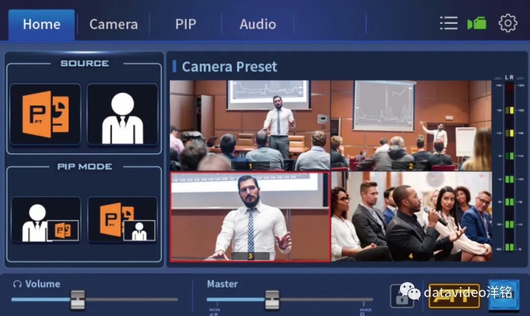 Datavideo新产品 iCAST mini智能会课宝是一台2机位专为“单人操作”而设计开发的多媒体便携设备,从企业培训到混合教学再到中小型会议等应用场景中皆可融入使用环境,一键触发功能,图形化的触控界面,可以让使用人员更直观的去操作。