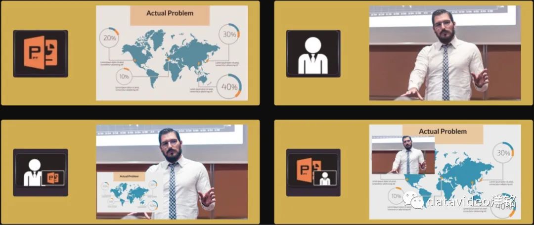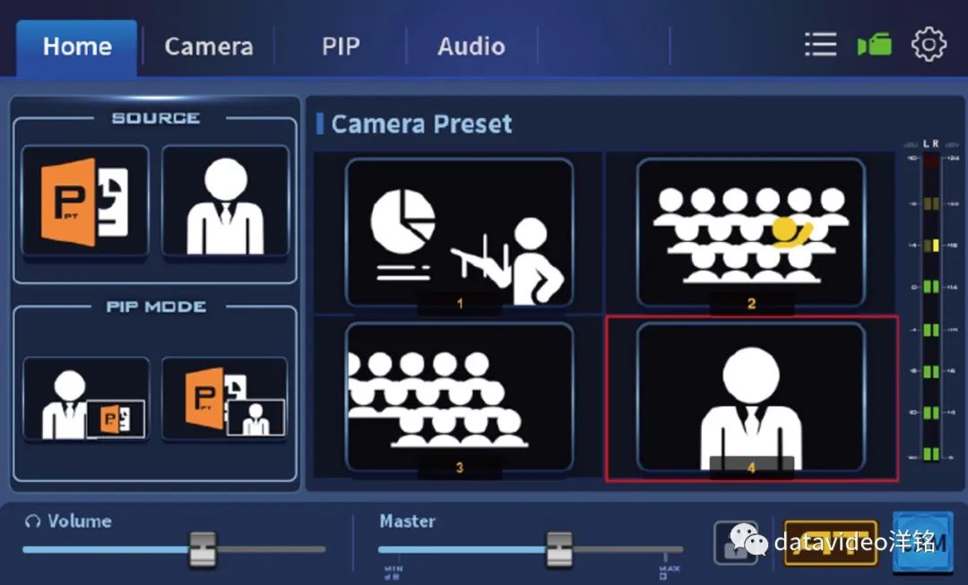 iCAST mini设置4种图形化的快捷键,可快速切换PPT、摄像机、或者使用PIP功能子母画面叠加。