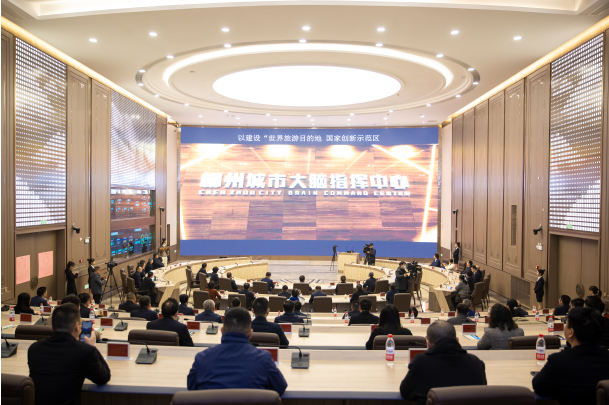 占地面积3000平方米的指挥大厅是整个城市大脑的总驾驶舱,整个区域划分为LED显示区、操作席位区、指挥席位区、与会人员区等,可实现综合监测、协调指挥、应急联动、融合决策、信息服务等功能。