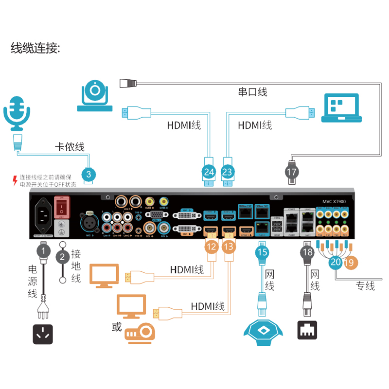 MVC XT900 高清4K视频会议终端,音视频接口极为丰富,全面支持4K高清编解码,是行业客户会议室建设的理想选择。可用于行政会议、应急指挥、远程会议、远程教育等各种应用场景。