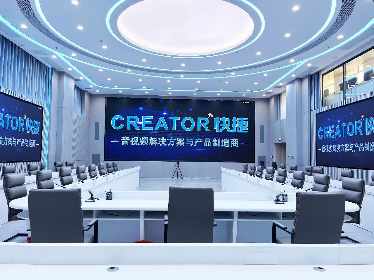 同时,各个会议室还采用了CREATOR快捷灵智K系列数字会议系统,会议系统支持双机热备和DANTE音频技术的功能。双机热备提供了安全稳定的双重保障,DANTE音频技术分散会议室的音频互通提供了低延时、低成本、高精度的解决方案。增益调节、高保真音效都给与会带来更优质的会议音质体验。