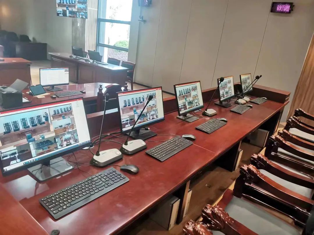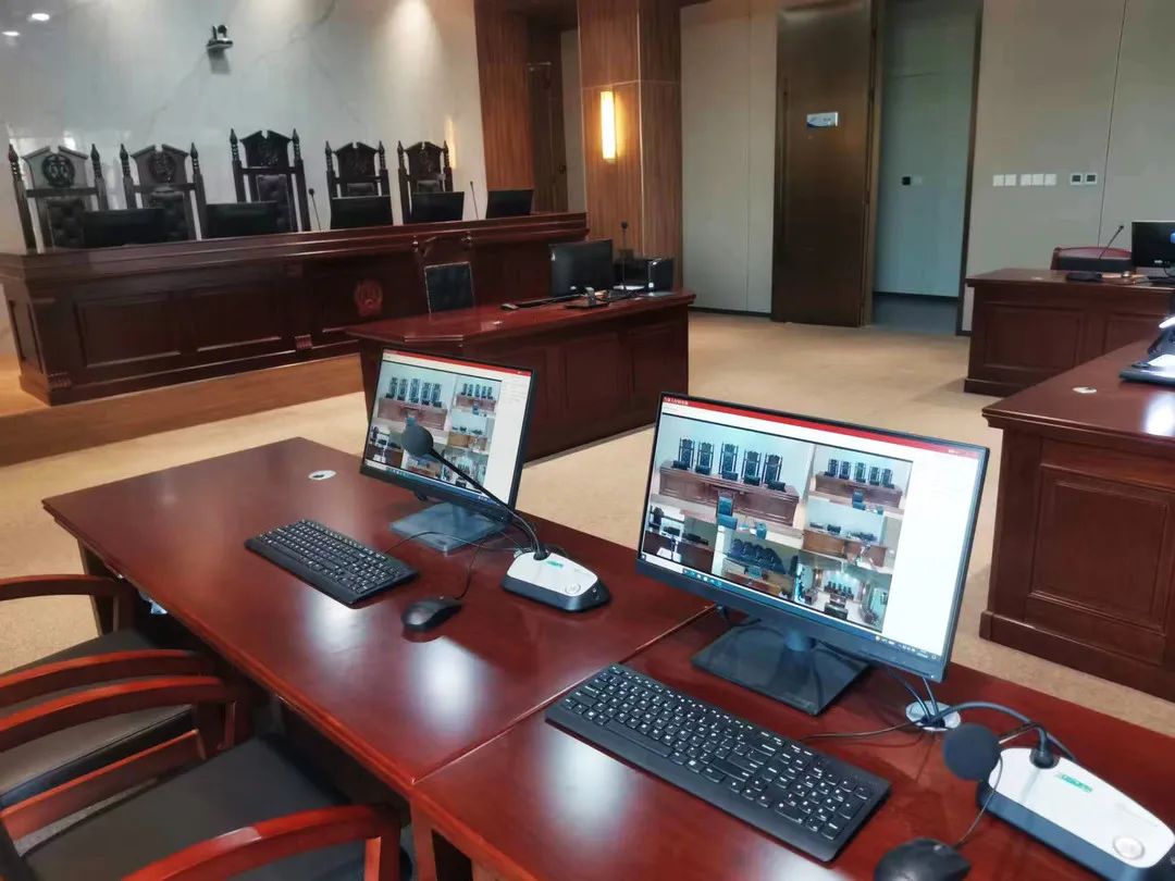 审理庭内的旁听人员通过庭内大屏幕显示设备;审理庭外的公众通过互联网系统,对公开审理的各类案件实现透明公开的了解和监督。