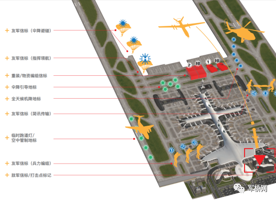 分队抢占机场后,利用信标列阵同步闪烁作为运输机进场地标;