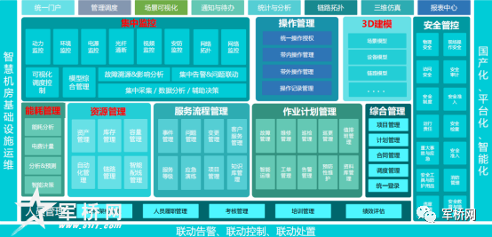 智慧机房统一运管平台——实现对机房基础设施层面人、事、物的全面智能化管控。软件平台搭建帮助用户实现机房业务管理便捷化;智能设备应用,帮助用户实现机房环境全息监测智能化。