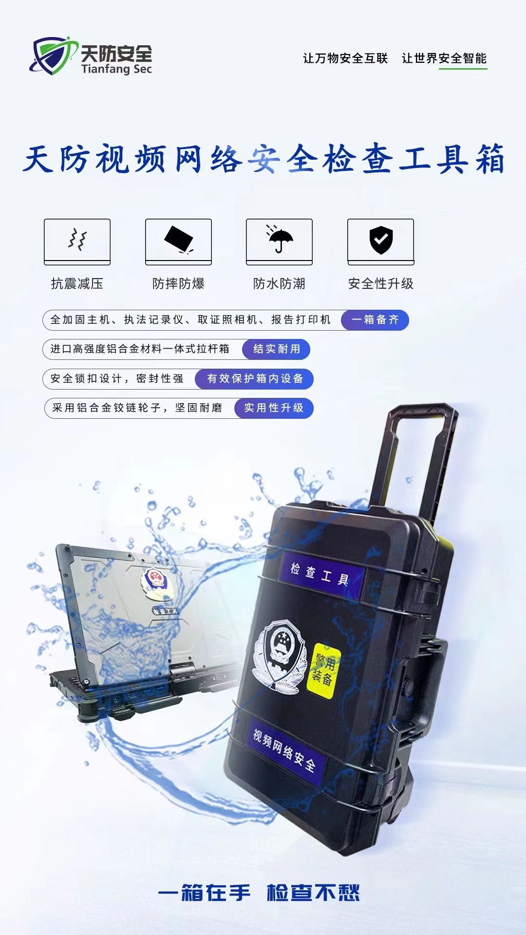 天防视频网络安全检查工具是根据公安/公共安全视频监控网络的安全现状和管理的需求,融合众多先进的信息安全检测技术手段和理念开发的一套便携式视频监控网络安全检查的专用系统,从网络资产快速摸底、设备弱口令及漏洞检测以及网络边界检测等几个方面,对网络进行快速的扫描检测,及时发现存在的各类安全隐患,以便排查和整改重要网络安全隐患、风险和突出问题,全面提升视频监控网络的整体安全性。