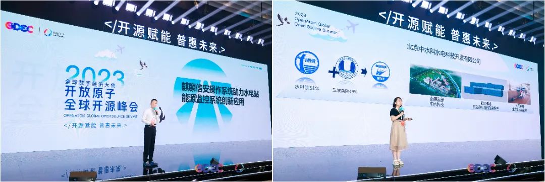 此外,麒麟信安副总裁王攀与来自北京中水科水电科技开发有限公司的监控事业部新能源工程主任何婷发表联合演讲,详细介绍麒麟信安操作系统助力水电站能源监控系统创新应用。
