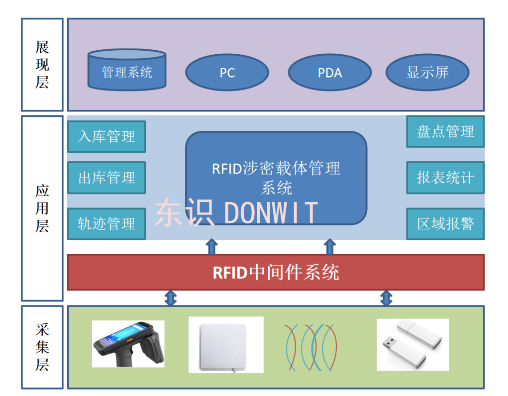 采用RFID技来实现对涉密载体进行管理和监控,实现涉密载体监控、预防流失管理和盘点等,能够有效地防止涉密载体的外漏,对涉密载体及重要文件实行管理及监督定位。