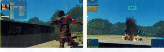 该功能重点提升学员的投准、投远水平。系统通过捕捉手榴弹初速度和投掷角度,利用抛物线的数学原理,系统拟合出爆炸物的投掷抛物线,从而确定最终的落点位置和距离,得出投远、投准的结果,并在头盔显示器中显示。