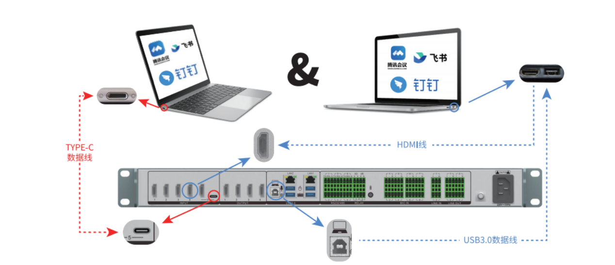 支持外接USB3.0音视频设备。例如:POLO、耳目达、罗技等品牌。可为召开线上云会议提供优质的音视频信号。