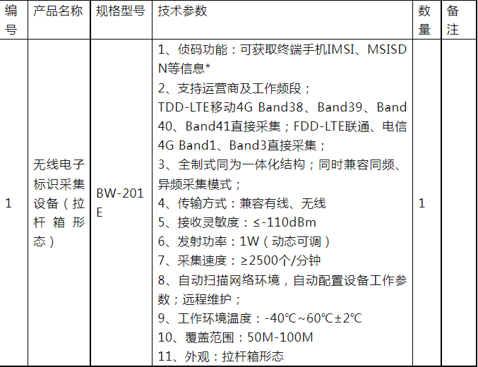实现对JLYL各级营区出入口,机要区,物资区,训练区等重要场所的布防,可获取进出人员携带手机的IMSI或MSISDN标识码,可通过发现IMSI或MSISDN,进入会议室,通过主动播报预警机制,研判人员违规携带手机情况,支持针对国内运营商4G(LTE)网络的手机终端的电子标识采集。