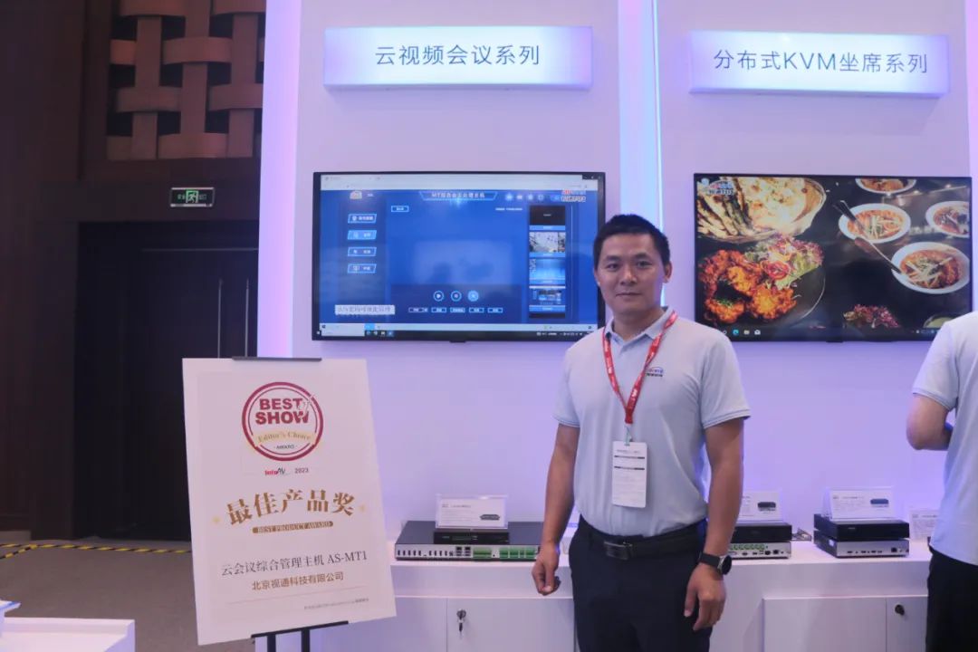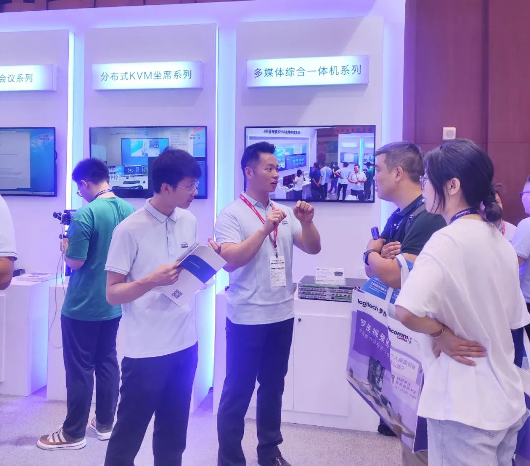 展厅现场,参观者对视通科技所展示的云视频会议管理主机、分布式KVM坐席拼控系统、多媒体综合一体机等产品表现出了浓厚的兴趣。技术人员详细地向观众讲解了产品的功能和特点,观众通过实际操作进一步了解并肯定了公司在产品创新研发和服务方面的卓越优势。