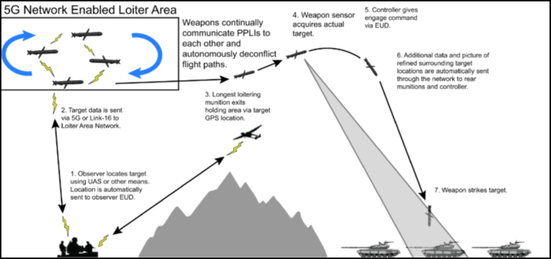 根据计划,师和旅空域内的网络赋能的巡飞弹空域协调区将提供对地面威胁的即时动态响应。邻近作战区域携带这类弹药的空中资产也可以将弹药投送到相邻的巡飞区,供邻近单位使用。这类武器的5G自主能力还将自动与包括水面火力在内的其它跨区域弹药消除冲突。网络赋能的巡飞弹将安装小型传感器,提供炮弹在网络中的位置,并允许同时使用水面和空中火力支援,大大降低自相残杀的风险。