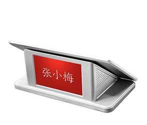 15.6 寸桌面款带背面桌牌一体机是无纸化会议终端的高级版,局域内通过对无纸化系统服务器的访问,高效处理会议信息,液晶屏背面搭载了 7 寸的电子铭牌。外侧的电子显示铭牌可显示会议名称、会议主题、人名、职务、单位、会徽、企业 LOGO,作为无纸化会议的交互终端使用功能更丰富,操作更便捷。