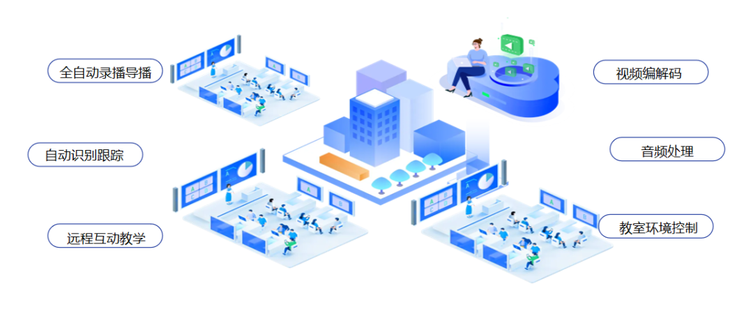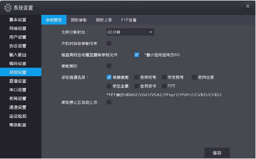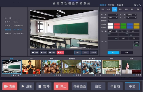 自动导播:依据跟踪摄像机及录播主机自带的课件PPT检测识别完成教师、学生、课件、板书画面的自动导播切换策略。
