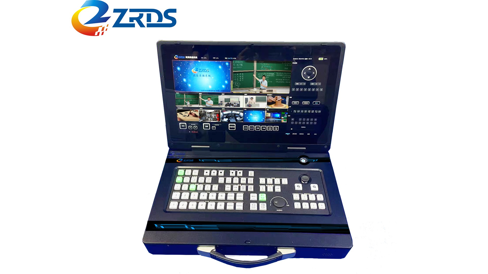 中软鼎晟便携式录制主机ZR-B300配备17.3"高清屏。屏幕最大分辨率1920*1080.液晶屏支持触摸功能。采用全铝镁合金结构设计,ARM+DSP+Linux操作系统,安全稳定可靠。集无线视频传输与有线双结合,满足在教室,户外运动场、访谈、...视台、报告厅会议室、赛事直播等,满足各行业场景应用需求。