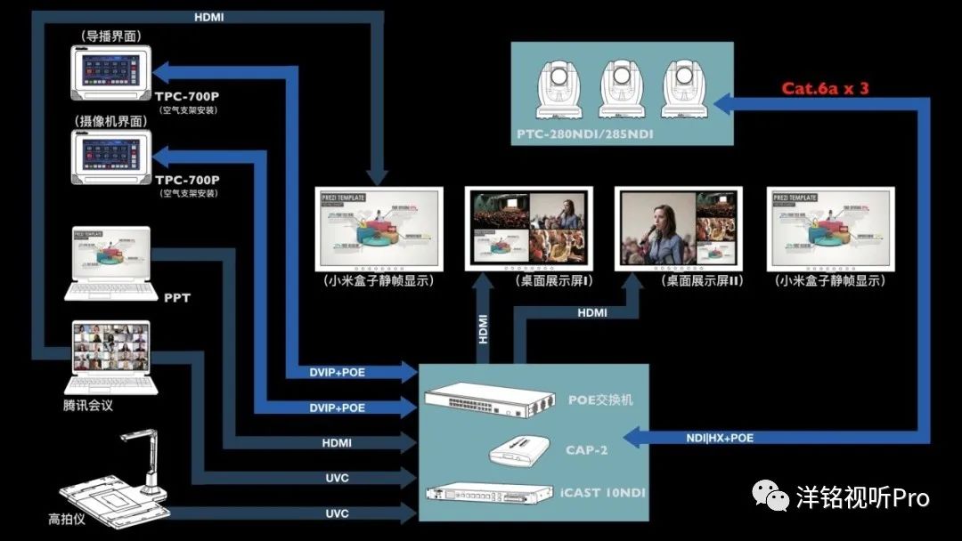 新品4K移动会议录播仓也将在今年BIRTV首次亮相,该方案特点在于一根网线实现长距离传输视频信号、Tally信号、摄像机控制,还能给摄像机供电;导播切换则采用可视化触控一体的解决方案,让视频制作过程更加直观简单,一站式完成摄像控制、导播切换、录像直播等功能。