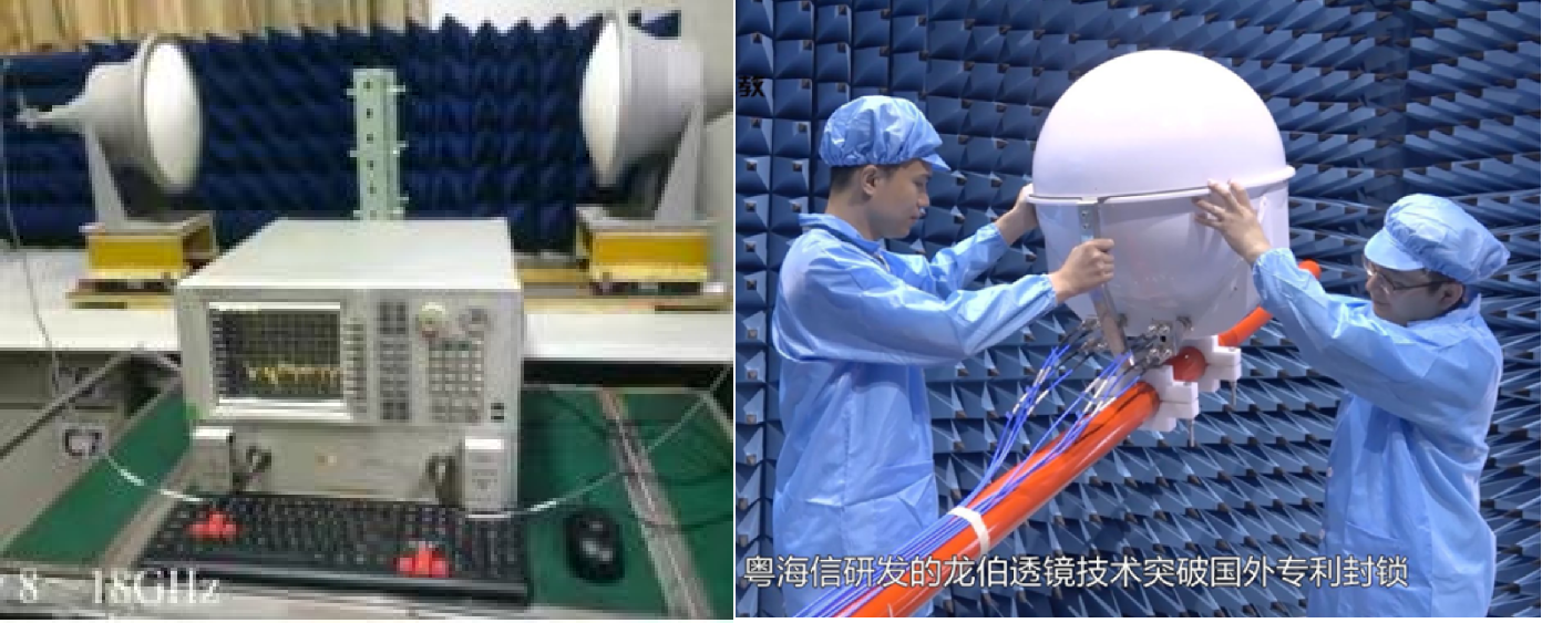 2020实验室是粤海信的技术“先遣部队”,紧密贴近国家产业布局和行业发展态势,积极开展前瞻性技术研发,一直从事新一代移动通信技术的专研和超材料技术的攻坚克难。通过多年潜心研究,成功研制出应用于龙勃透镜制造的系列电磁波超材料,这种材料以多种独特的改性金属氧化物、精密的微纳结构为基础,以高分子材料为架构,具有介电常数精确可控(0.05)、介电损耗小(小于0.002)、材料密度低(小于30kg/m³)的优势。粤海信龙勃透镜技术处于世界先进水平,已广泛应用于天线、雷达成像,具有工作频带宽、散射面积大、反射角域宽的特性