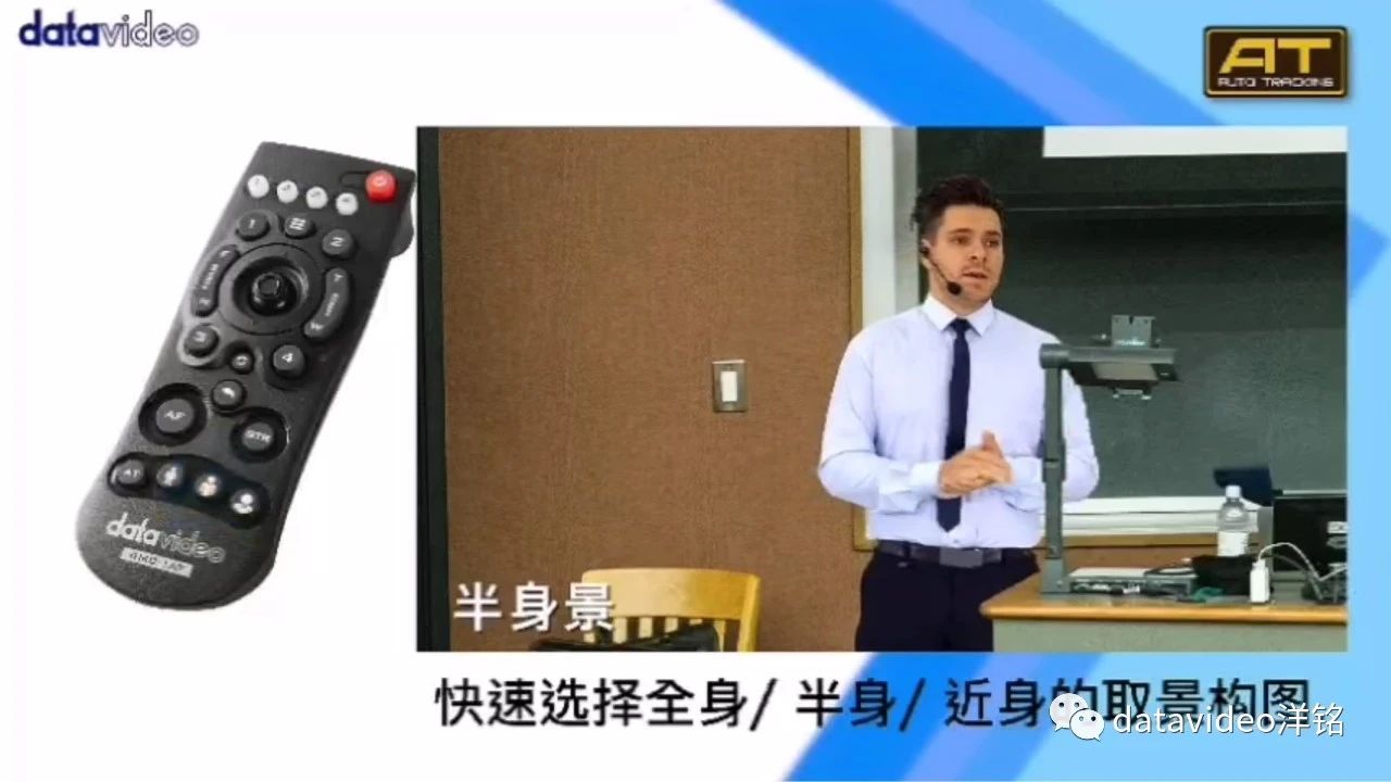 第一种控制方式:使用标配的RMC-1 遥控器,一键快速开关 AT 摄像机智能追踪功能。一个遥控器可以控制四台摄像机的所有参数且每个摄像机都可有四个预设点。