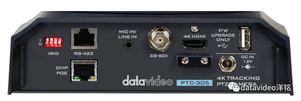 Datavideo PTC-305 4K 智能追踪云台摄像机系列,除了细腻的4K画质外,具备 1/1.8 英寸 CMOS 感光元件, 分辨率可达2160p 50/60,还具备20倍光学变焦、16倍数码变焦,提供观众高清晰且细腻的视觉盛宴。