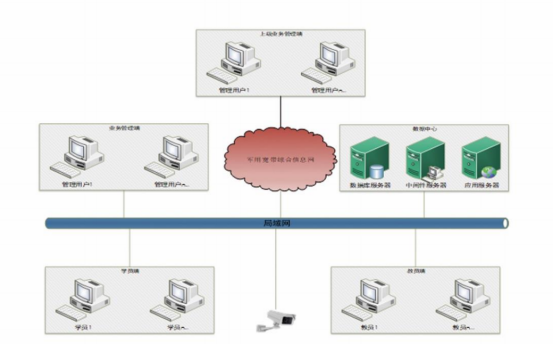 系统主要由五大部分组成,分别为:数据中心、业务管理子系统、教员端子系统、学员端子系统、纠察管理子系统。