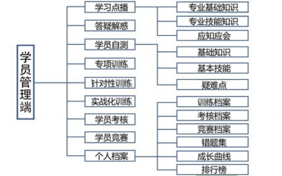 主要是学员进行点播学习、日常自测、专项训练、在线考试,查询训考结果和评估意见。