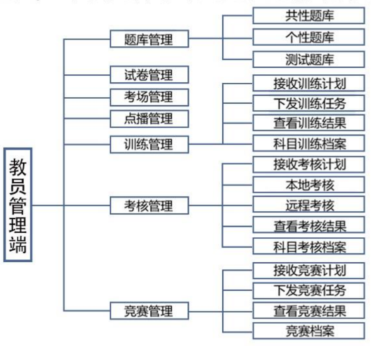教员编制题目,生成试卷,组织管理训练和考试过程,对学员训练考试过程进行统计分析。