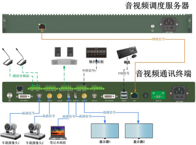 车载指挥系统解决方案以北京视通科技的音视频编解码通讯终端与音视频调度服务器基础,集成视频系统、音频系统、中控系统、录播系统、融合通讯你系统等多系统为一体,实现多区域、多系统统一管理;全系统互联、互控,一键式调度等应用。