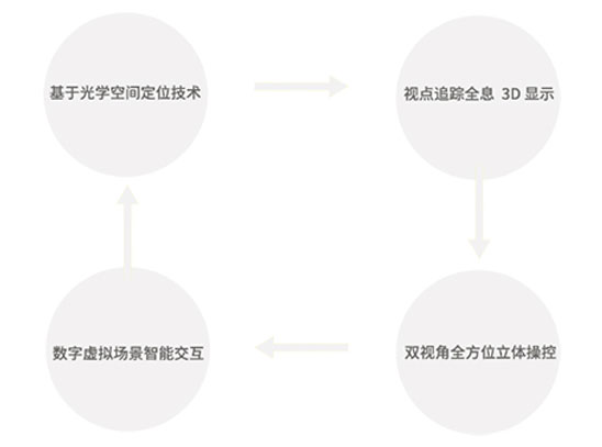 全息3D桌面交互系统 : 是全息3D智能立体交互系统应用于桌面型交互的一种产品形态,通过轻量级的交互笔和全息3D场景内容实时操控,将3D显示载体用桌面式3D显示设备呈现。