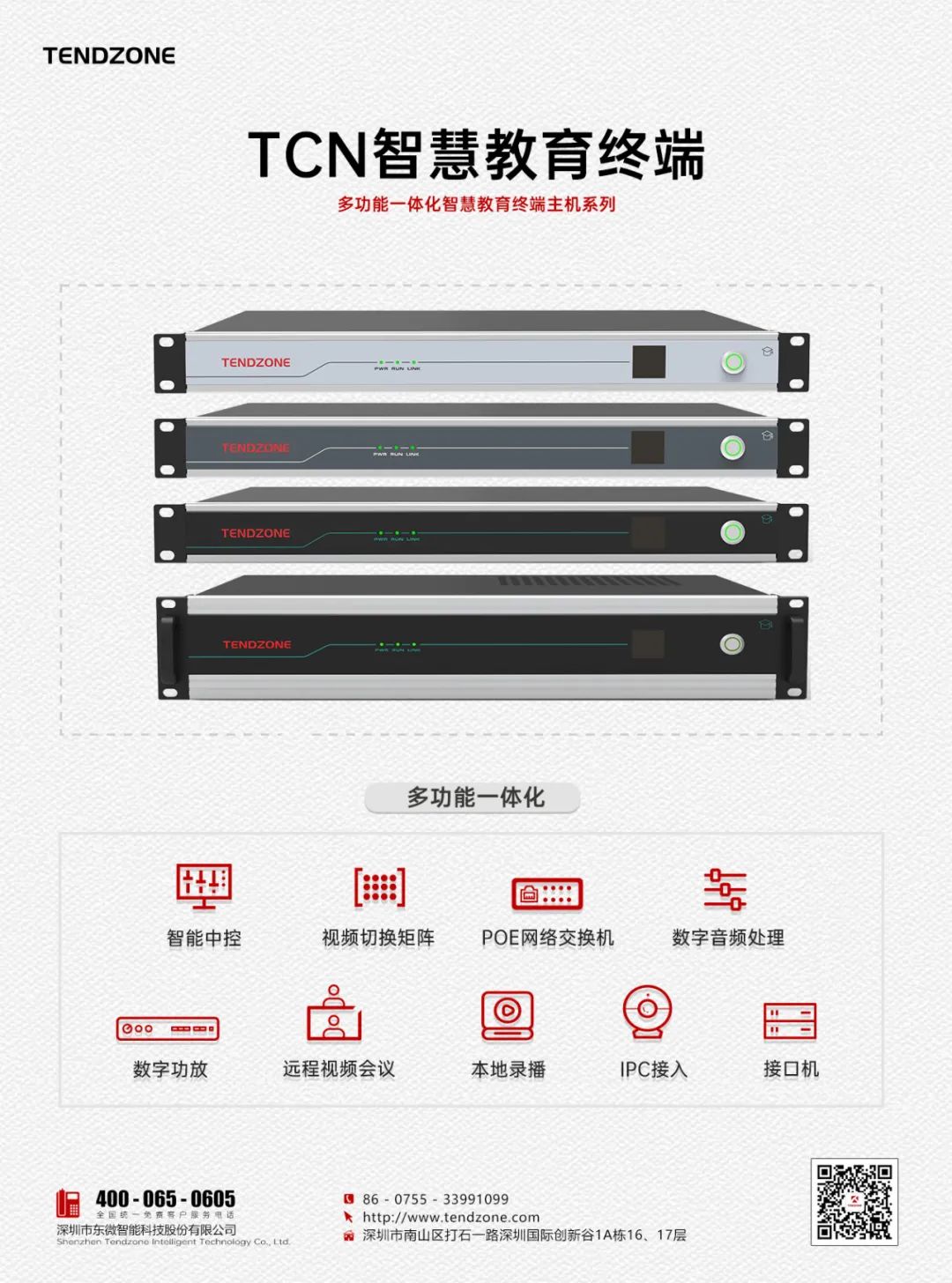 东微TCN智慧教育终端是一款多功能一体化智慧教室终端主机,采用全新升级的高性能处理芯片,融合集成数字音频处理、视频矩阵、教学中控、媒体处理、视频互动、物联控制、精品录播、POE交换机等功能模块于一体。同时支持多机位高清摄像头接入、内置自动导播客户端以及导播机制,广泛应用于远程互动教室、常态化录播教室、精品录播教室、多媒体教室场景。主机可独立组网,智能接入教室各种类型的音视频多媒体设备、环境设备等,为用户提供一键智能多媒体教学操作体验。