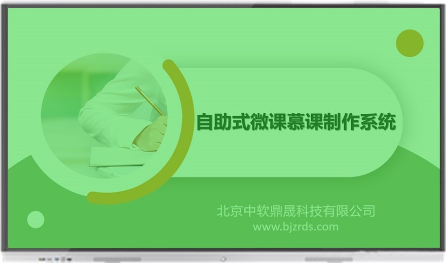 中软鼎晟自助式微课慕课制作系统搭载86寸超高清—体机,完全还原老师正常授课方式,可实时板书,实时标注,配备中软鼎晟自主研发的绿膜软件,可完成实时抠像,实时输出课件。