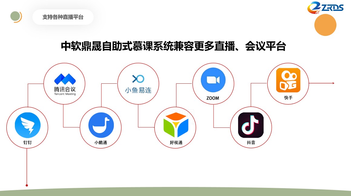 中软鼎晟自助式微课慕课制作系统兼容各种直播平台,腾讯会议,钉钉,抖音,快手,小鱼易连,ZOOM,好视通等各种直播,会议平台