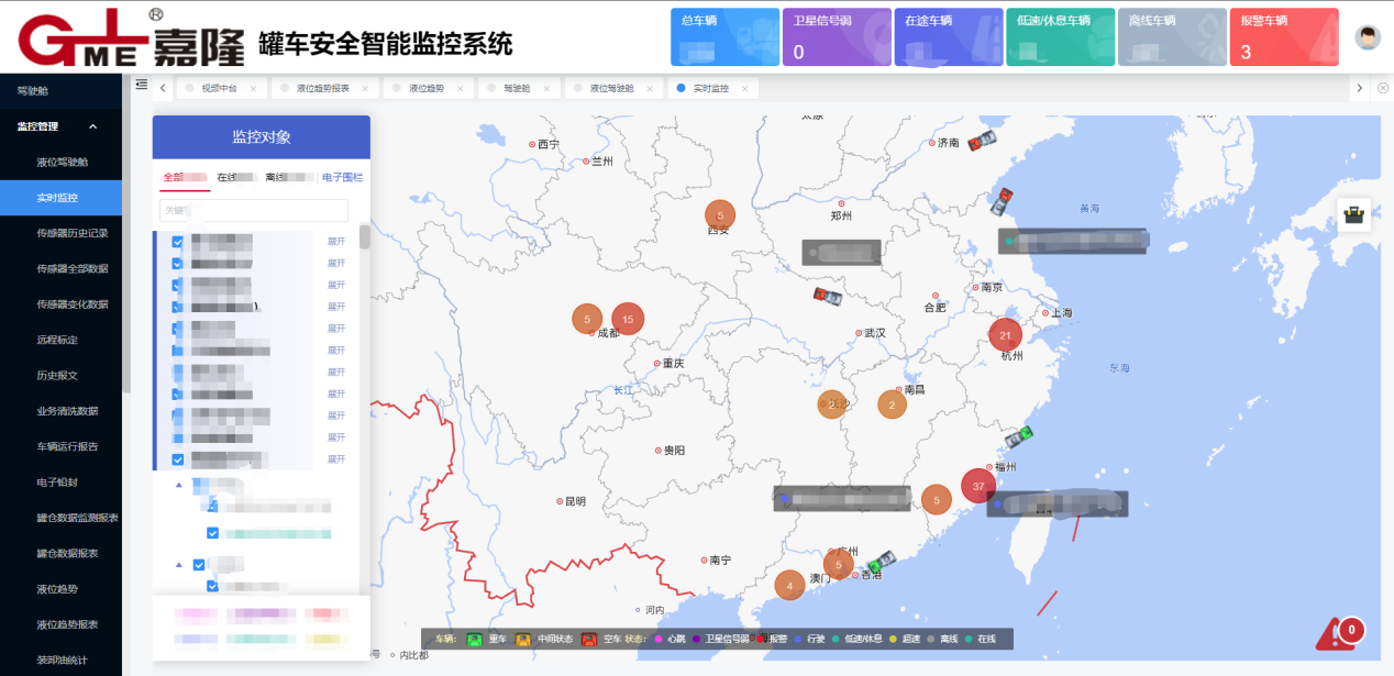 嘉隆军用油罐车安全智能监控系统,采用智能硬件和云管理平台软件相结合,边缘计算和云计算互补,依托公司在罐车安全附件20多年的行业经验,为罐车提供装卸阀(API阀)、海底阀、人孔盖、阀门开关、液位、温度、压力、倾斜角、罐内余油、GPS/北斗定位、速度、电子围栏、防疲劳驾驶、视频监控等全方位的安全智能监控和成品油计量保障,在危化品运输安全监管行业达到国内先进水平。