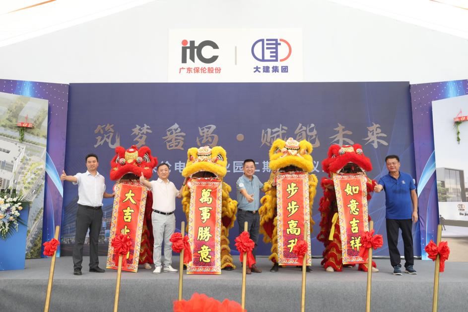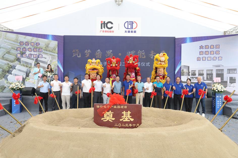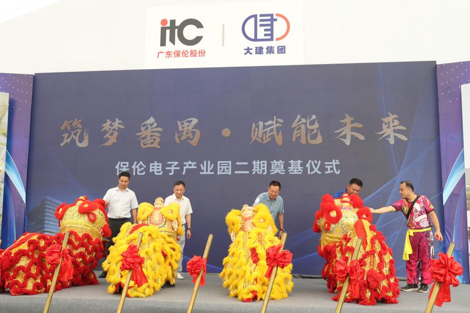 10月27日上午,保伦电子产业园二期奠基仪式盛大举行!番禺区住房和城乡建设局局长陈舜展,番禺安协会长褚荣森,itc集团董事长朱正辉、董事长张常华、总裁赵定金等相关领导,大建建筑集团有限公司董事长林明新,共同见证这喜悦盛事!