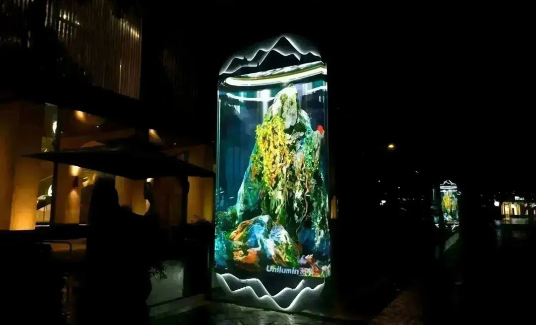 2023杭州亚运期间,洲明打造的“全球首款户外COB”亮相西湖畔。搭配可联动的沉浸式鱼缸数字内容,该COB屏幕对比度达到10000:1,作为信息展示发布平台,轮播亚运会、杭州美景等,实现了COB产品户外“0”的突破,开启了COB应用的新篇章!