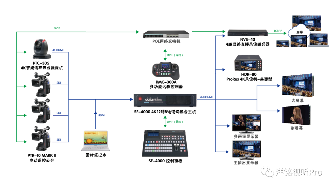 近来,Datavideo洋铭的工程师就遇到了许多会议厅、报告厅甚至剧院剧场的一些升级改造项目需求,其中有不少用户提及他们是目标打造4K的视频拍摄和制作环境的,但由于过去高清时代采购过一批前端摄像机,结合采购设备预算有限这一情况,所以希望能够有一款兼容高清和4K信号处理的设备帮助他们从高清过渡到4K,最终实现全4K系统的升级目标。