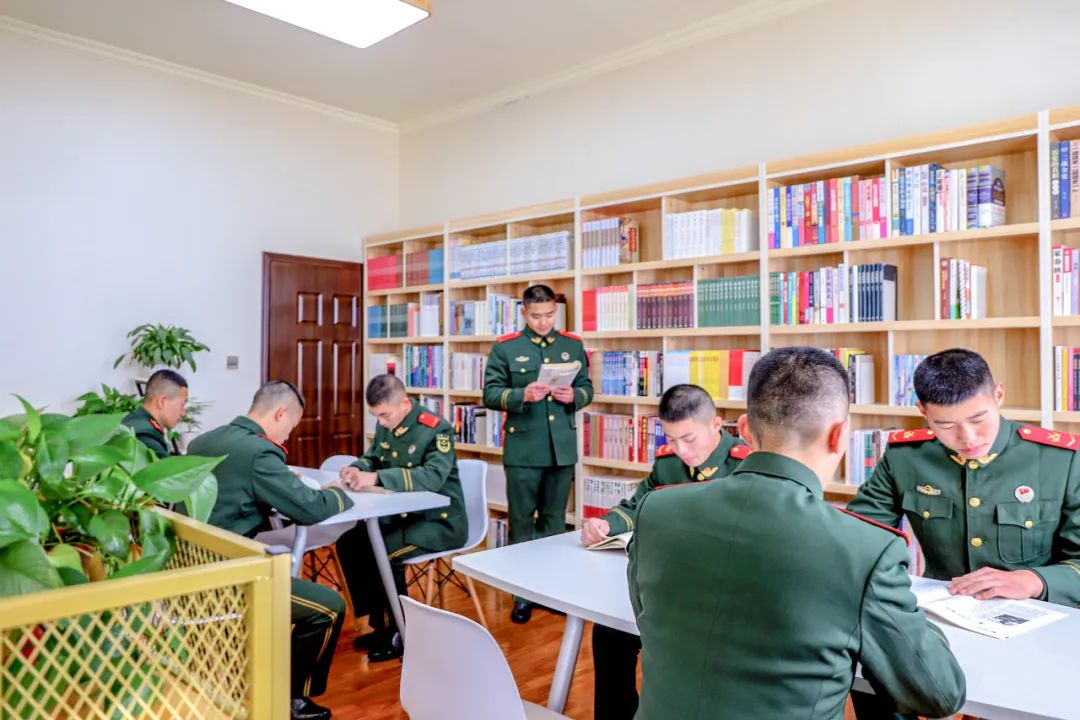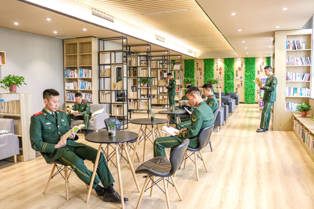 曾几何时,文化场所不完善、传统陈旧,缺乏现代感、吸引力,成为制约基层文化建设的挠头问题,特别是阅读场所陈旧冰冷、书籍较少、缺乏温度,官兵们都不愿走进来,更不用说阅读学习。此次书香军营建设过程中,各单位把更新完善阅读场所作为基础工作、必要条件,组织人员到地方图书馆参观见学,开阔了眼界视野、更新了思想观念,也畅通了军地合作渠道。在学习借鉴的基础上,经过反复研究论证,参照地方城市书屋、自助图书馆建设模式,形成了以纸质图书阅读区、数字资源浏览区、互动交流区、管理服务区4个区域,纸质图书资源、数字阅读资源2类资源,人流统计系统、借书还书系统、信息集成系统、自动检询系统4大系统为主要内容的新型阅读场馆。近3年来,各级对各类阅读场所进行了升级完善,武警部队与地方文化公司联合开发了智慧图书馆管理系统,将各级各类图书馆联通起来,构建起武警部队、总队、支队、中队和执勤驻训点5级新型阅读场所体系,阅读阵地实现了延伸拓展,学习环境焕然一新。浙江总队金华支队义乌中队的“望道书室”、广西总队百色支队那坡中队的“强军书屋”、新疆总队伊犁支队尼勒克中队的“河谷卫士书吧”、第二机动总队的“星火书吧”等品牌图书室,成为基层部队现代化建设的新地标,成为营区最靓丽的风景线,也是广大官兵日常最喜爱的打卡之地,全时开放、随时可读。