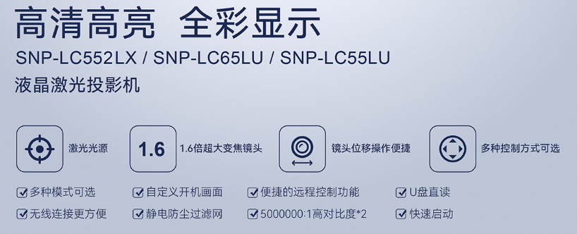 投影机采用激光二极管作为主要发光源体,有效提高光学性能,白色画面显示更为精准。