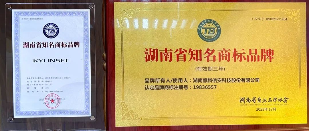 会上宣布了2023年“湖南省知名商标品牌”认定名单,麒麟信安旗下“KYLINSEC”商标成功入选,这是继2022年之后,麒麟信安再度荣膺“湖南省知名商标品牌”奖项,既是业界对麒麟信安品牌价值的持续肯定和认可,同时彰显了麒麟信安领先的行业地位和不断提升的品牌影响力。