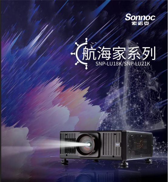 索诺克航海家系列投影是具有较高的性能和稳定性的高亮度激光工程投影机,支持WUXGA和4K UHD分辨率,亮度最高达到21K流明。这款投影仪不仅适用于大型场所、会议室、报告厅等场景,还能在户外、灯光明亮的环境中呈现出清晰明亮的画面效果。