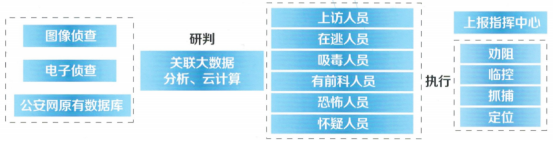 决策执行主要是针对大数据云计算分析出的结果,依据嫌疑人属于sf人员、吸毒人员、前科劣迹人员、在逃人员、恐怖分子等不同类别,分别采取劝阻、警告、拘留、侦控和抓捕等相应法律措施。