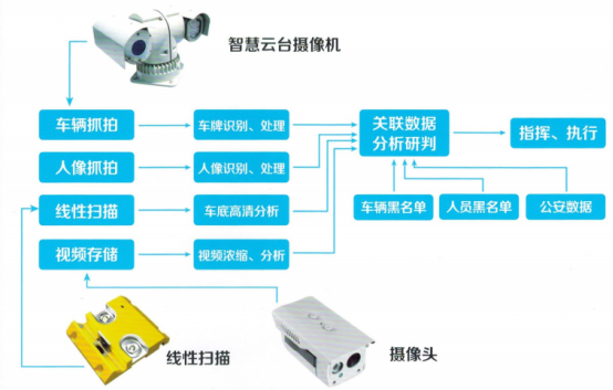 配备有高速智能云台摄像机,实现对车辆及行人图像进行快速建模、特征提取和实时黑名单比对,同时可在海量视频中通过视频浓缩和视频图像增强处理,快速搜索关联线索。配备有智能线性车底扫描仪,生成完整的车底高清图像。