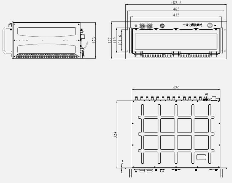 机箱结构二维尺寸图如图 2 所示,整机尺寸为 482.6mm(宽)×177mm(高)×324mm(深)。