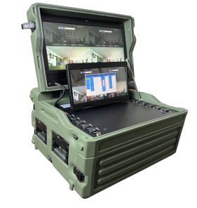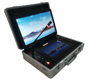 MCS3000 是一款移动便携指挥箱。本产品是用于特殊工作环境中设计开发的一款拉杆式指挥箱,将诸多功能模块与接口集成之中(设备内部集成 PC、视频会议终端、摄像头、光端机、8*8 视频矩阵、8*8 音频矩阵、显示屏、扬声器、话筒等基础设备)。