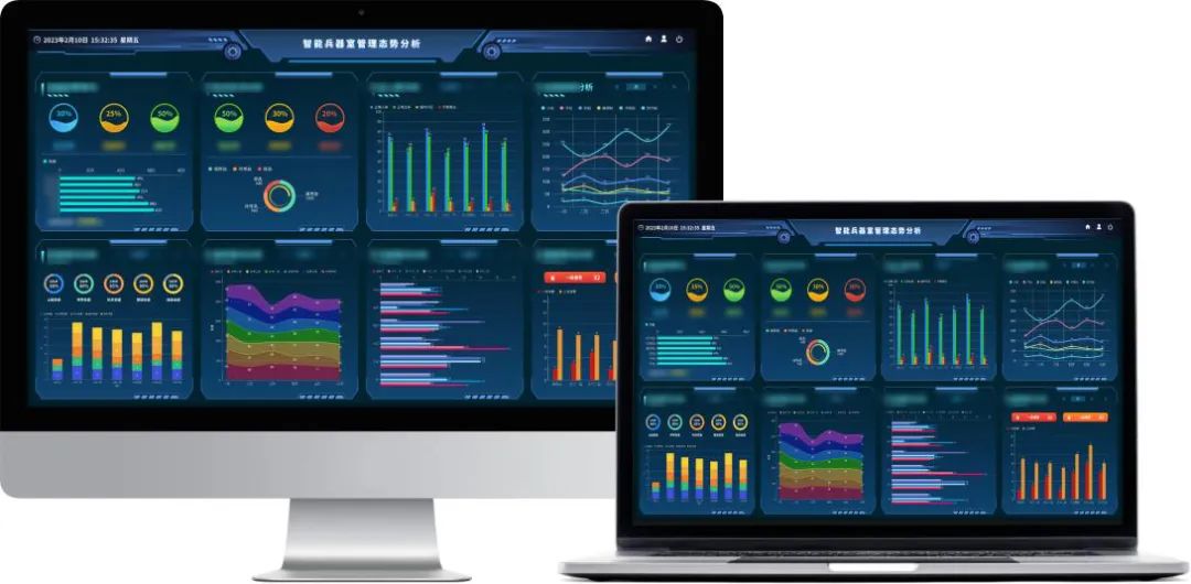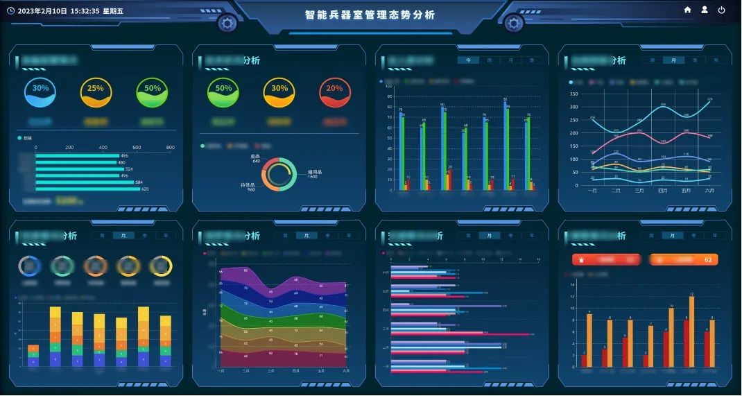将各连队兵器室智能终端联为一体,实时汇总末端管理数据至旅级兵器室管控平台,通过业务模型和AI算法,自动生成电子版的连队军械装备登记薄,实时生成全LV装备在位率、配套率和编配率等核心数据,从多个维度生成的全旅兵器室管理态势图,全方位展示全旅装备管理实时数据和业务趋势,为首长机关装备管理决策提供数据支撑。