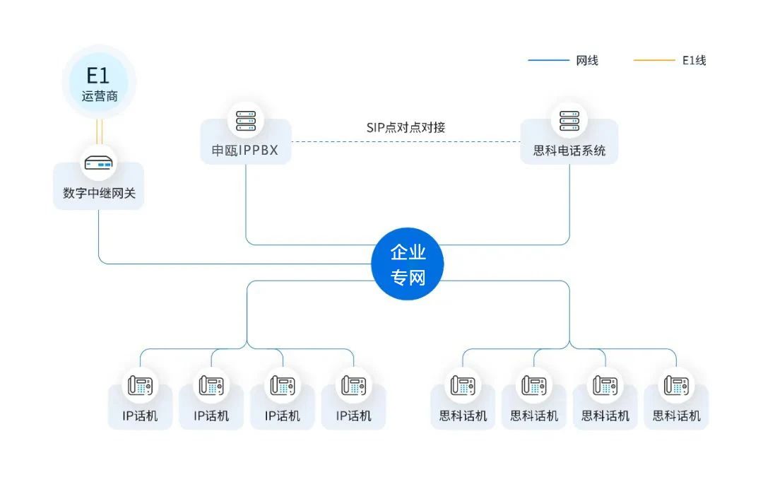 IPPBX通过有线连接接入专网,确保稳定的数据传输。