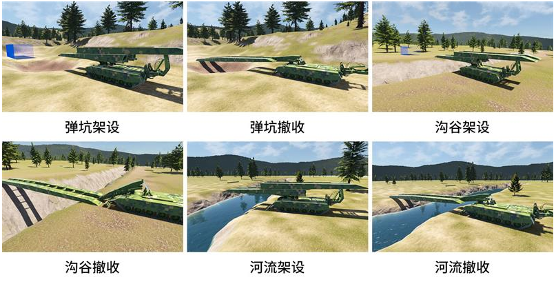 某型坦克冲击桥训练模拟器重点针对应用作业、理论教学等内容进行学习和训练,可快速使操作人员掌握基本操作和操作步骤,通过虚拟现实技术使受训人员体会安全事故的后果,能有效避免安全事故的发生,从而有利于培养多样化人才,达到部分代替实装的训练效果。
